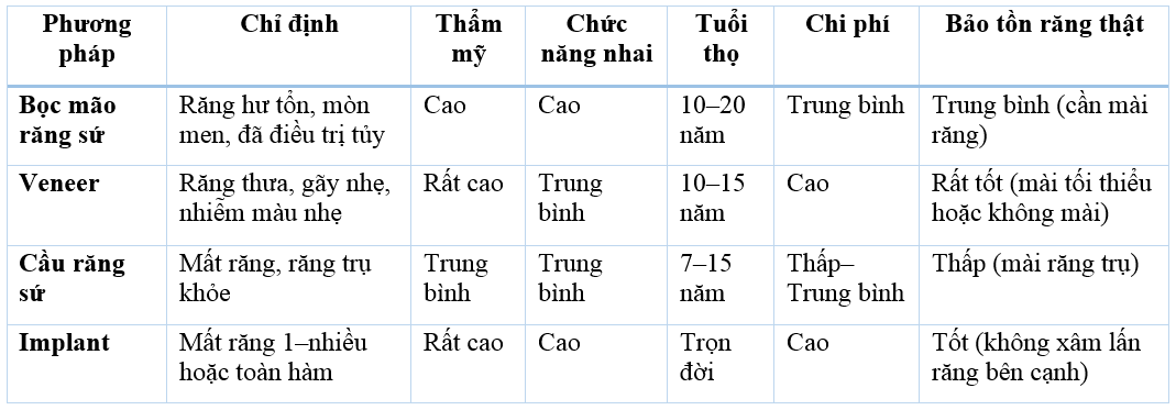 Dưới đây là phân tích chi tiết các phương pháp trồng răng sứ hiện đại.